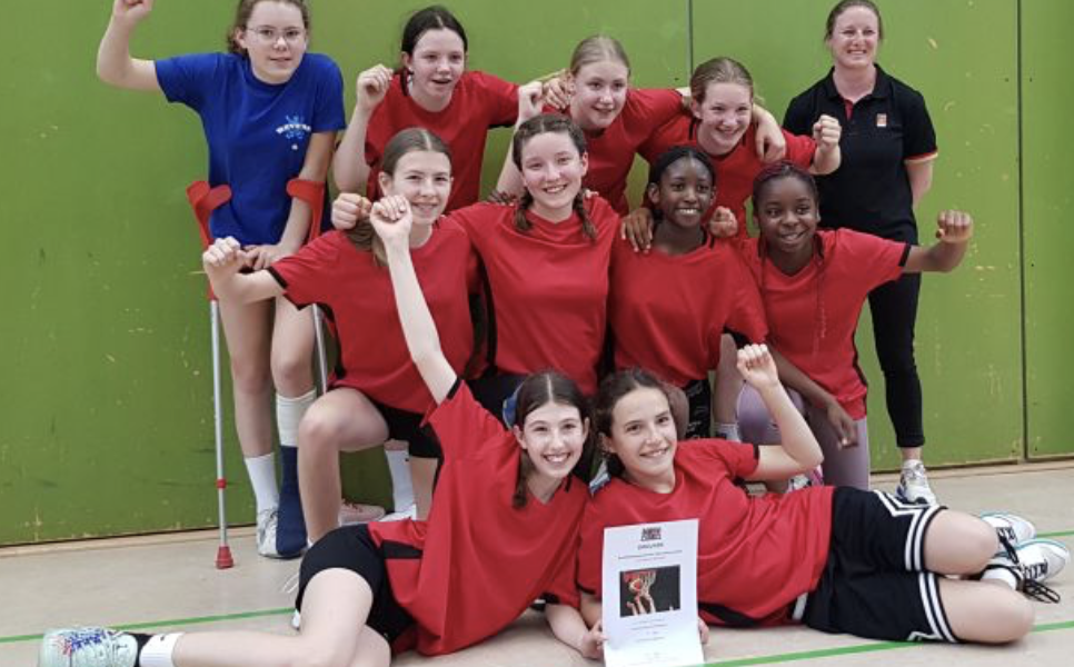 Großer Jubel bei den Basketballmädchen des Viscardi-Gymnasiums: Das Team der Wettkampfklasse IV hat das Südbayernfinale souverän gewonnen und sich damit für das Landesfinale qualifiziert! In beeindruckender Form setzte sich die Mannschaft zunächst mit 42:9 gegen das Team aus München durch. Auch im zweiten Spiel gegen Augsburg ließen die Viscardi-Mädchen nichts anbrennen und gewannen deutlich mit 35:14. Das Landesfinale findet nun