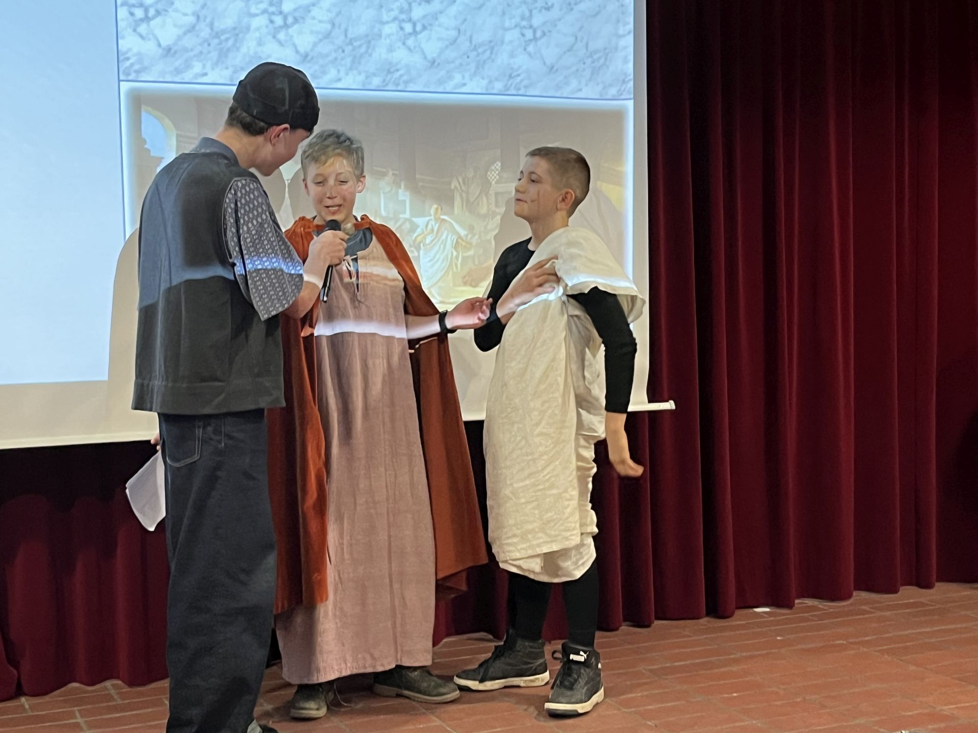 … hieß es inmitten der Faschingswoche am Viscardi-Gymnasium. Von Baristi, Pizzabäckern und Mafiosi bis hin zu Sklaven und Cäsaren sowie römischen Göttinnen war alles vertreten, was im alten Rom und in Bella Italia Rang und Namen hat.