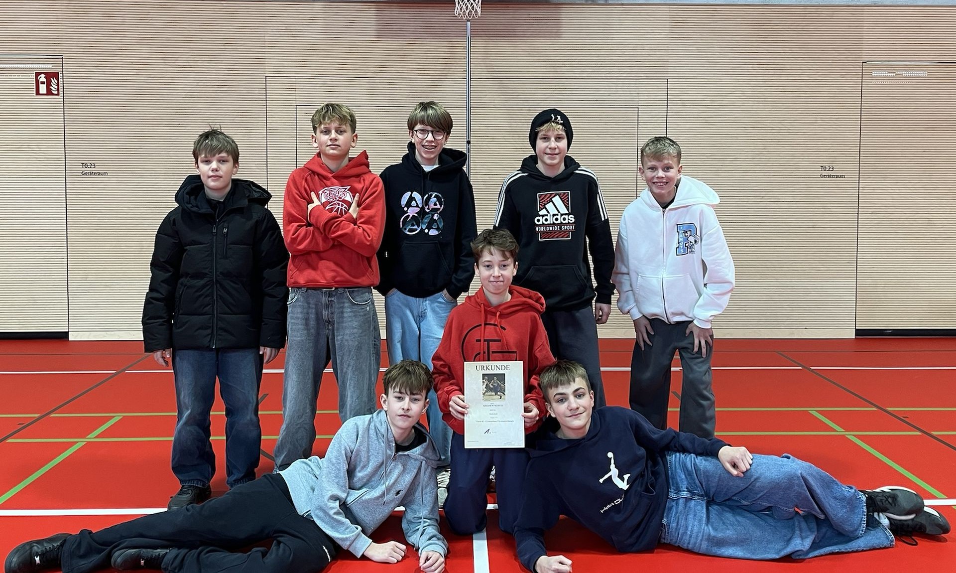 Am 27. November 2025 fand am Gymnasium Puchheim der Kreisentscheid im Basketball statt – und die Mannschaft des Viscardi-Gymnasiums (Altersstufe 2012 und jünger) zeigte dabei eine herausragende Leistung.
