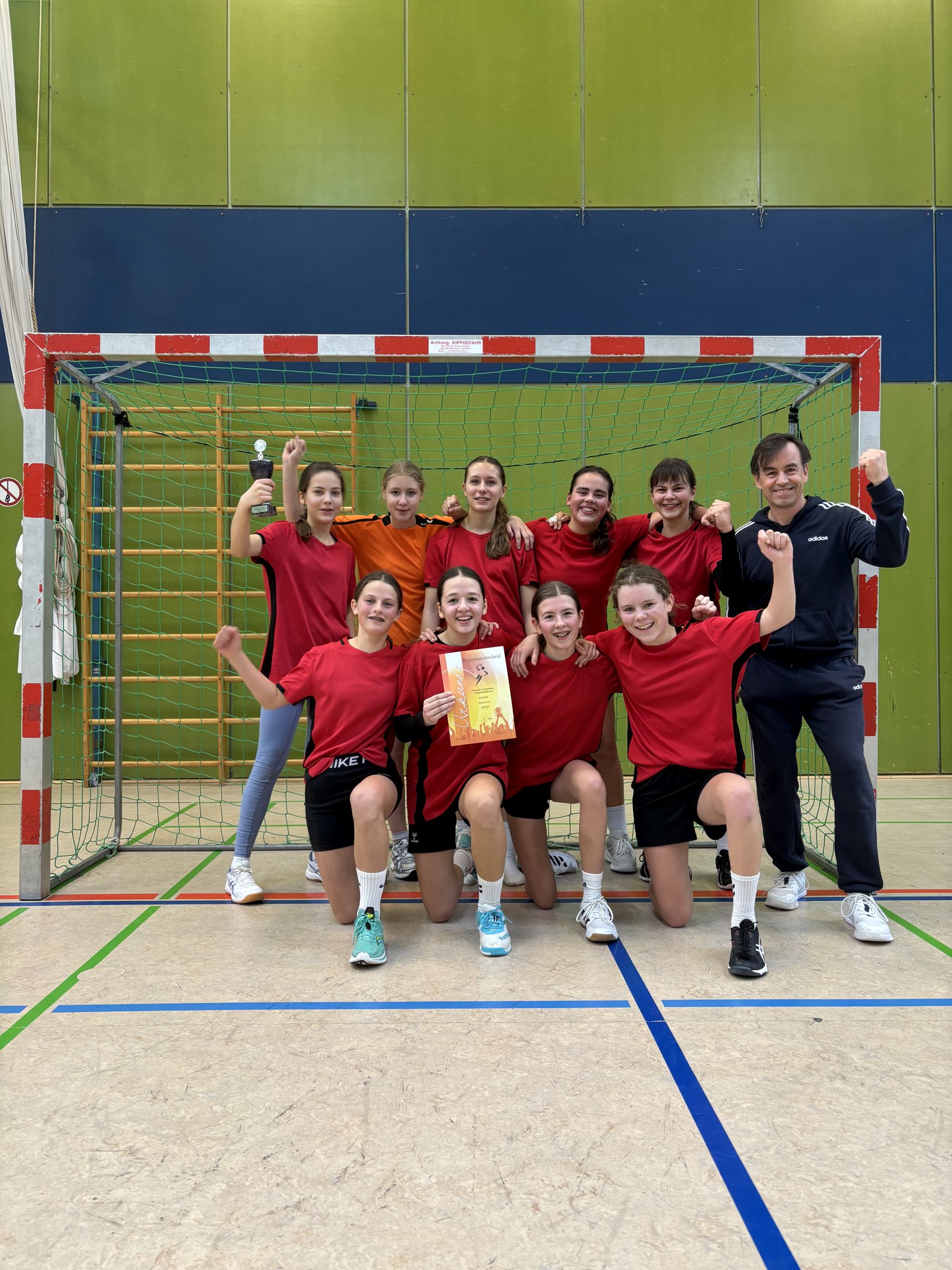 Unser Viscardi-Handball-Team der Mädchen (JG 2010-2012) hat sich am Donnerstag, den 09.01., im Regionalfinale des Schulwettbewerbs „Jugend trainiert für Olympia“ erfolgreich gegen das Team des Ignaz-Kögler-Gymnasiums aus Landsberg am Lech durchgesetzt. Gleich zu Beginn wurde der allererste Angriff der Gäste abgewehrt, das erste Tor selbst geworfen und dann bald ein Torvorsprung ausgebaut. Gegen Mitte des Spiels, als die Spielerinnen aus Landsberg einmal bis auf zwei Tore herankommen konnten, schien es für einen Moment so, als könne sich das Spiel noch zu Ungunsten des Viscardi-Teams entwickeln. Doch am Ende ging das Spiel mit 26:19 Toren hochverdient an das Viscardi-Team, welches sich entsprechend freuen durfte. Herzlichen Glückwunsch zu diesem Erfolg!